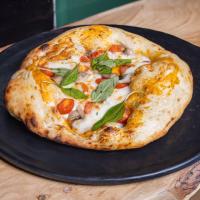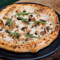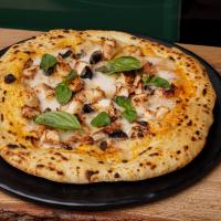 خمیر پیتزا ناپولیتن، سینه مرغ تکه ای، سس مارینارا، قارچ، پنیر ناپولی، ریحان ایتالیایی یا روکولا یا گوجه