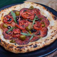 خمیر پیتزا ناپولیتن، پپرونی گوشت۹۰%، سس مارینارا، هالوپینو، زیتون، پنیر ناپولی، گوجه